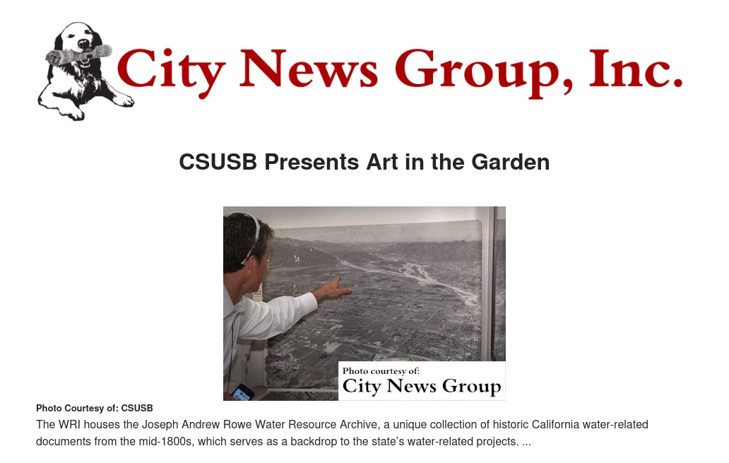 “Art in the Garden” showcases CSUSB student works of art by bringing water leaders, students, staff, faculty, and the community together. In addition to showcasing art, each of the WRI’s annual donors will have the opportunity to speak to attendees about their agency.