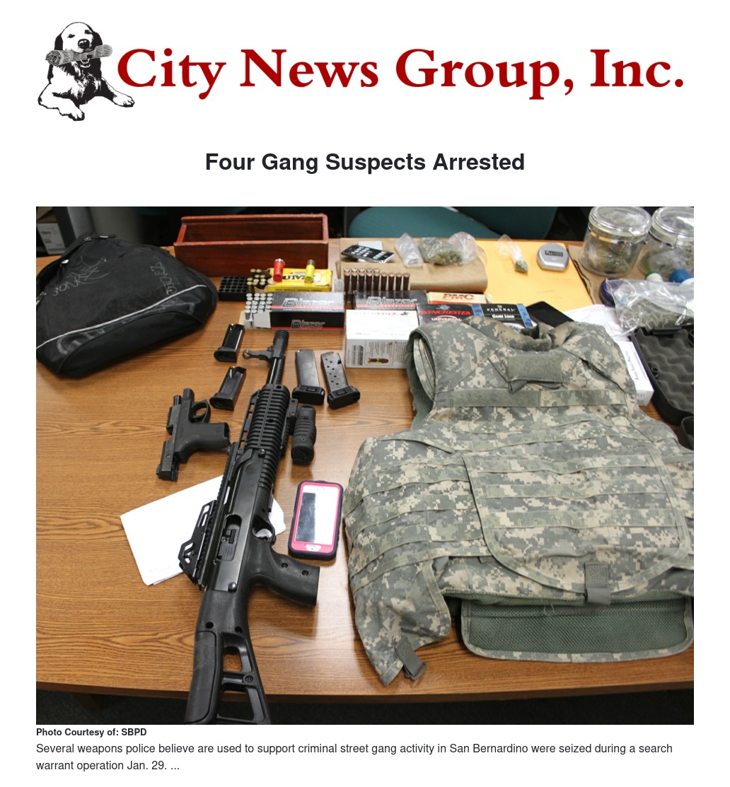 San Bernardino police with the help of forces from the San Bernardino County Sheriff's Department and the FBI took four suspected gang members into custody after a multi-agency operation throughout San Bernardino early Wednesday, Jan. 29.