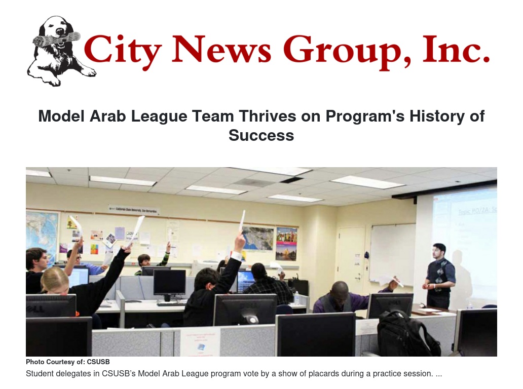 That’s 21 consecutive times – one for every year the university has sent a team – that CSUSB students have earned the highest team award given at Model Arab League conferences, where teams from various universities represent the member nations of the Arab League, tackling the same issues that their real-life diplomatic counterparts encounter.