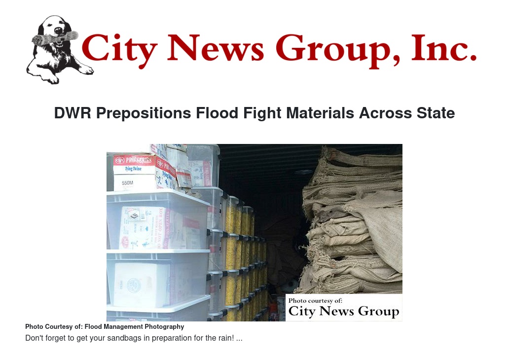 As part of preparing for the flood season and in response to several agency requests for flood fight materials, the Department of Water Resources or DWR strategically prepositioned flood fight materials in warehouses and pre-loaded containers throughout the State.
