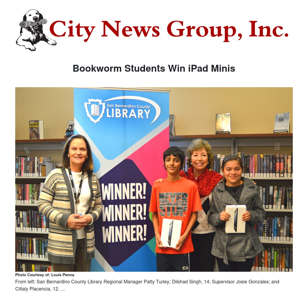 Two students were awarded with iPad Minis Dec. 17 as winners of the Baker's Book Club, the first fall reading program at the San Bernardino County Library.