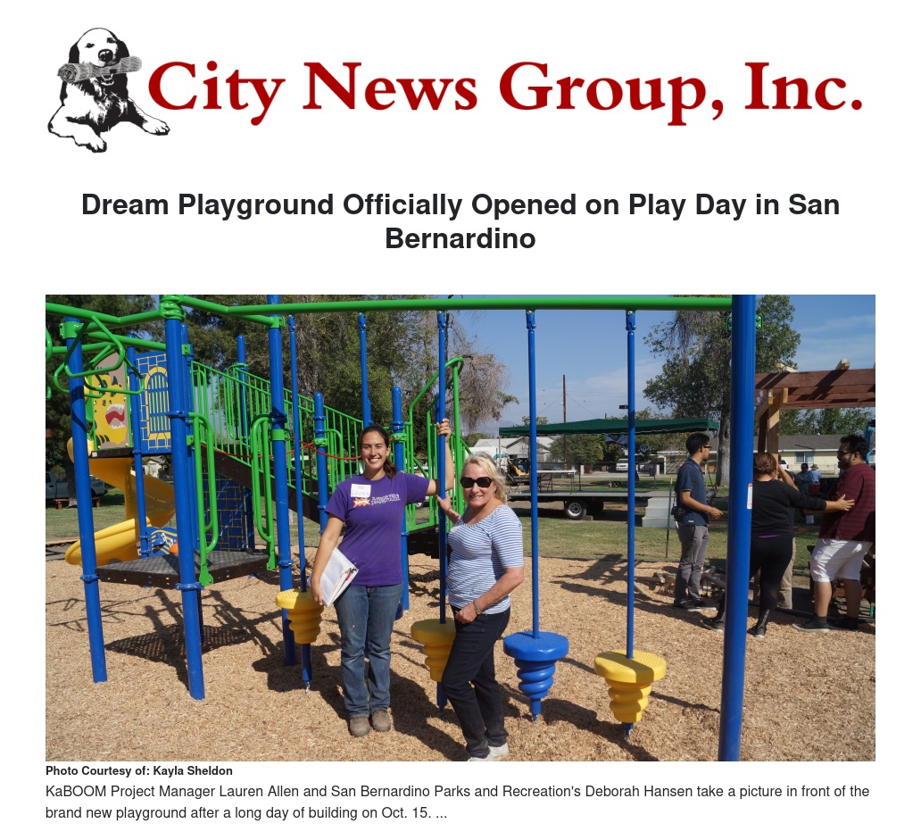 Dream Playground Officially Opened on Play Day in San Bernardino