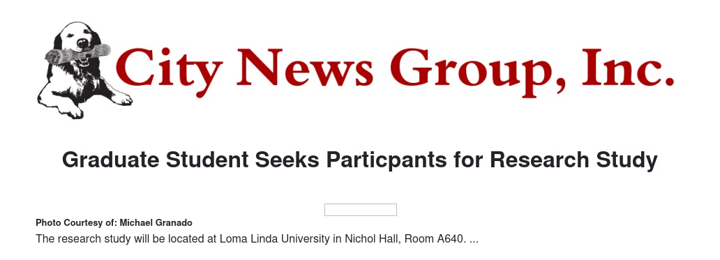 For more information, contact graduate student investigator, Michael at (909) 447-9796 or at mgranado@llu.edu.
