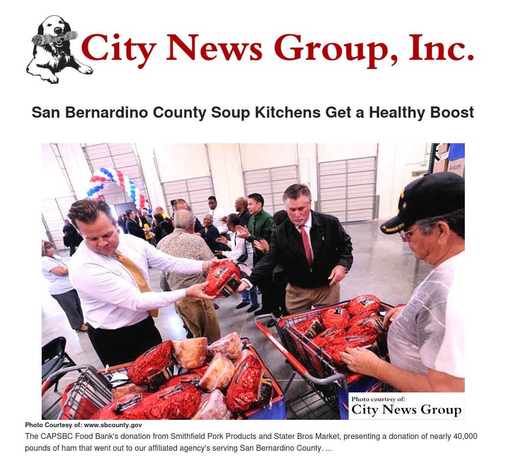 On any given day in San Bernardino County, the Community Action Partnership of San Bernardino County (CAPSBC) Food Bank is busy providing food to over 32 congregate feeding sites (soup kitchens) that are on the front lines of addressing hunger and poverty by serving meals to homeless and very low-income individuals who may otherwise go hungry.