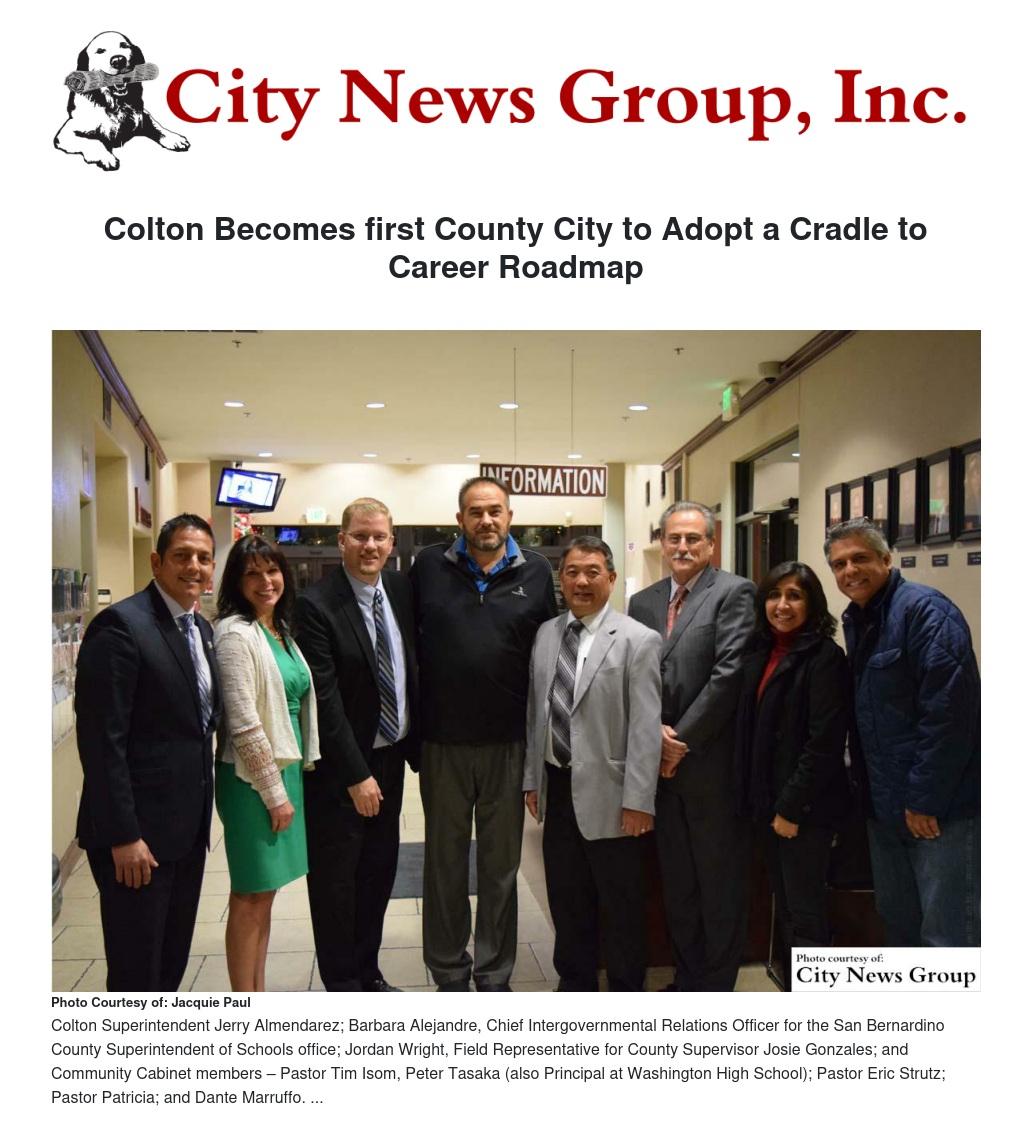 “I am very proud of the City of Colton for passing this historic resolution,” added Colton Joint Unified School District Superintendent Jerry Almendarez. “The Cradle to Career Roadmap ensures not only our students’ individual success, but the success of our city and county as we develop a more educated and prepared workforce. The support of all stakeholders is critical in this effort.”