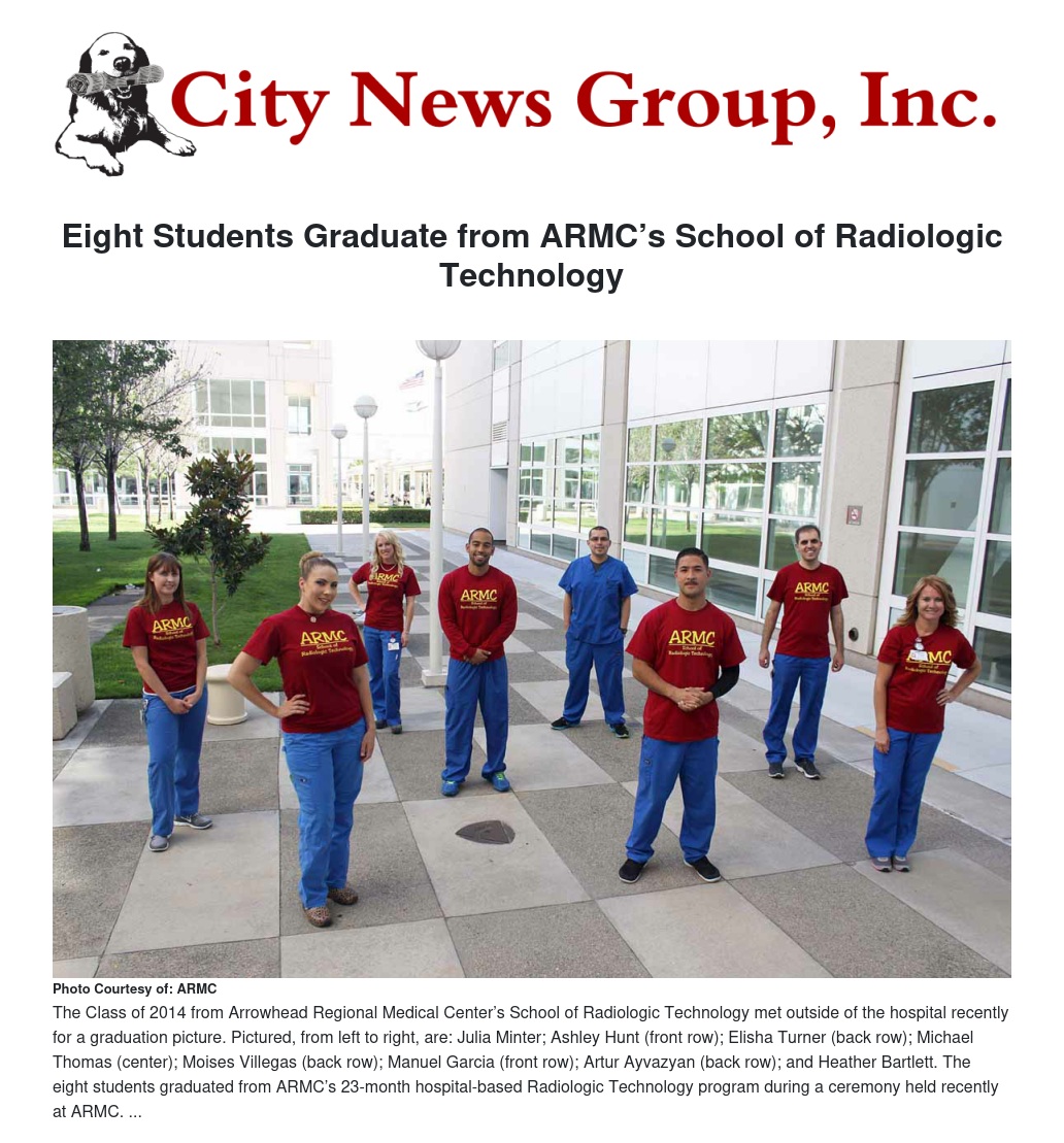 Eight students graduated from Arrowhead Regional Medical Center’s School of Radiologic Technology during a ceremony held recently at ARMC.