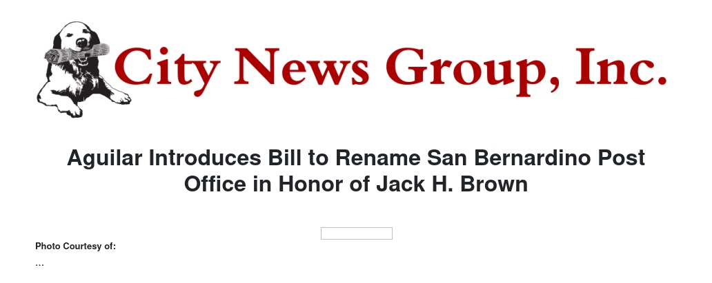 Aguilar Introduces Bill to Rename San Bernardino Post Office in Honor of Jack H. Brown by - City News Group, Inc.