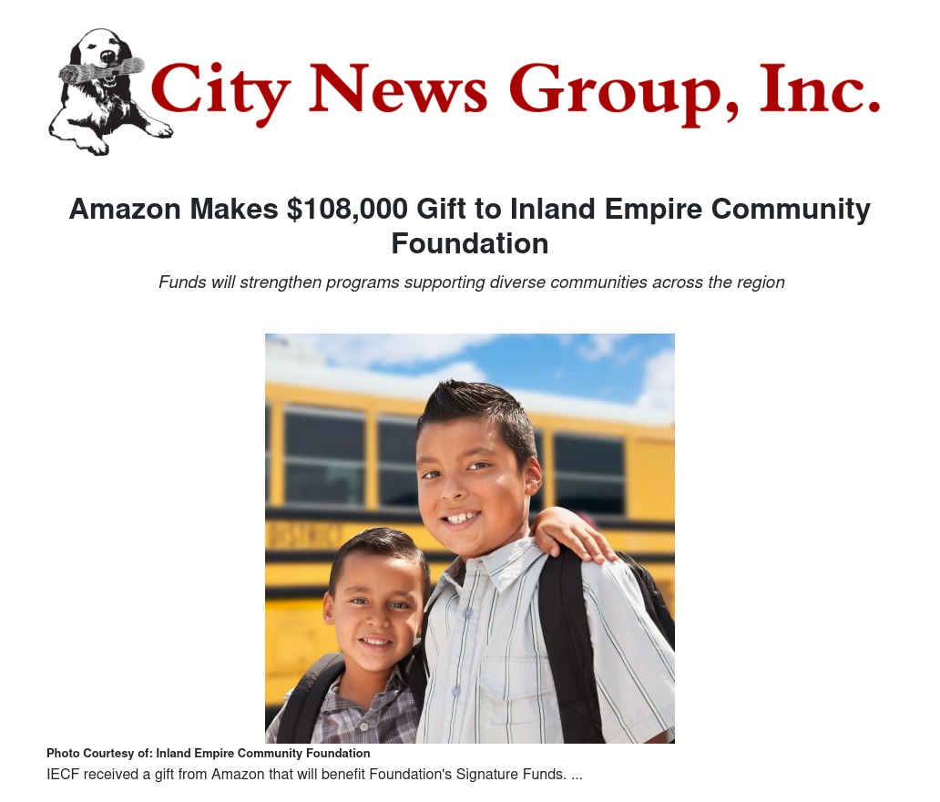 Amazon Makes $108,000 Gift to Inland Empire Community Foundation by Charee Gillins - City News Group, Inc.