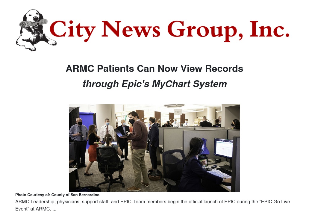 Arrowhead Regional Medical Center (ARMC) has gone live with the MyChart patient portal. This new health records system helps providers and patients securely communicate with one another and more efficiently manage their health visits.