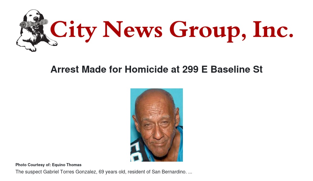 Arrest Made for Homicide at 299 E Baseline St by Equino Thomas - City News Group, Inc.