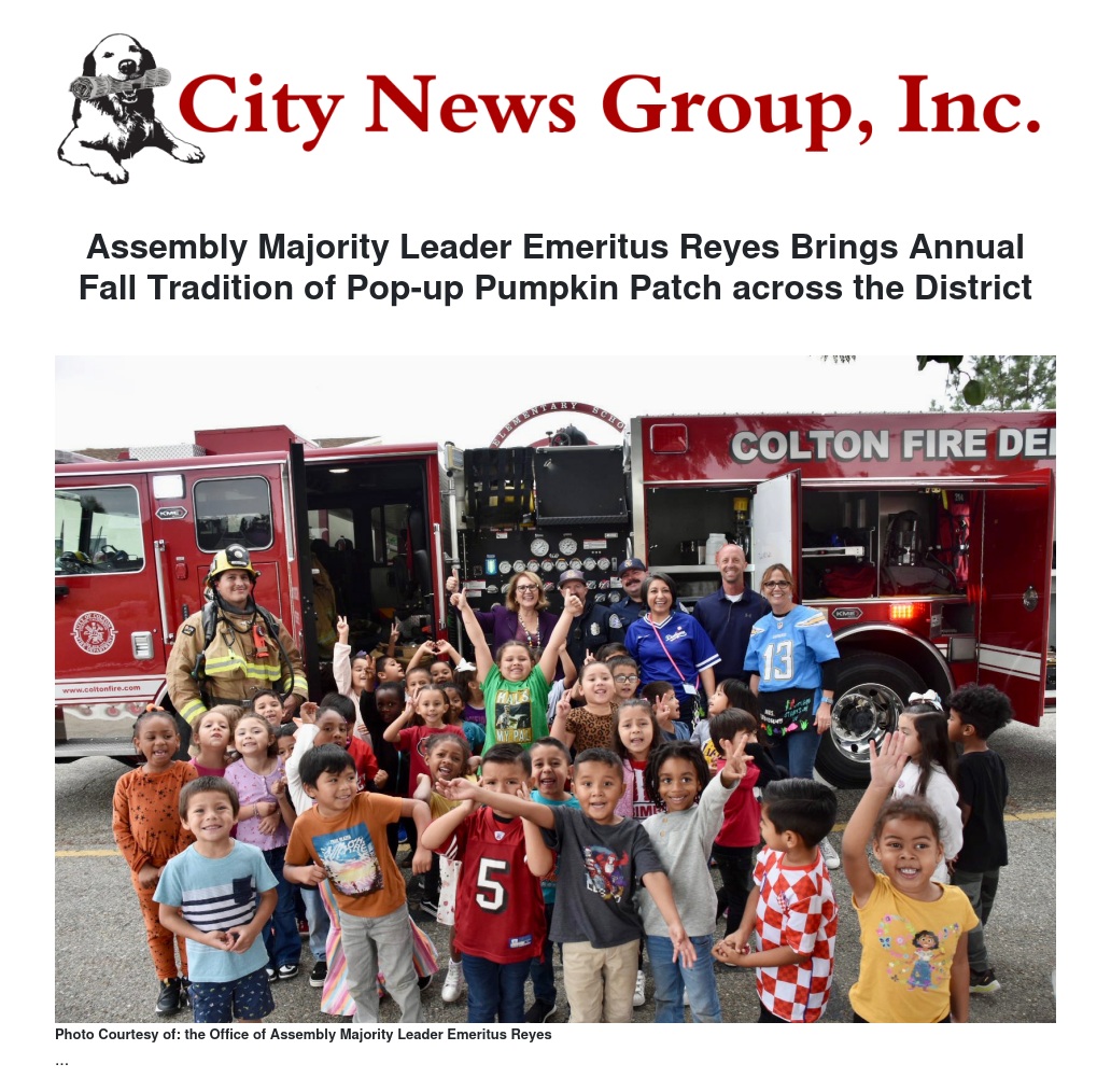 Assembly Majority Leader Emeritus Reyes Brings Annual Fall Tradition of Pop-up Pumpkin Patch across the District by Jenn Hardy - City News Group, Inc.