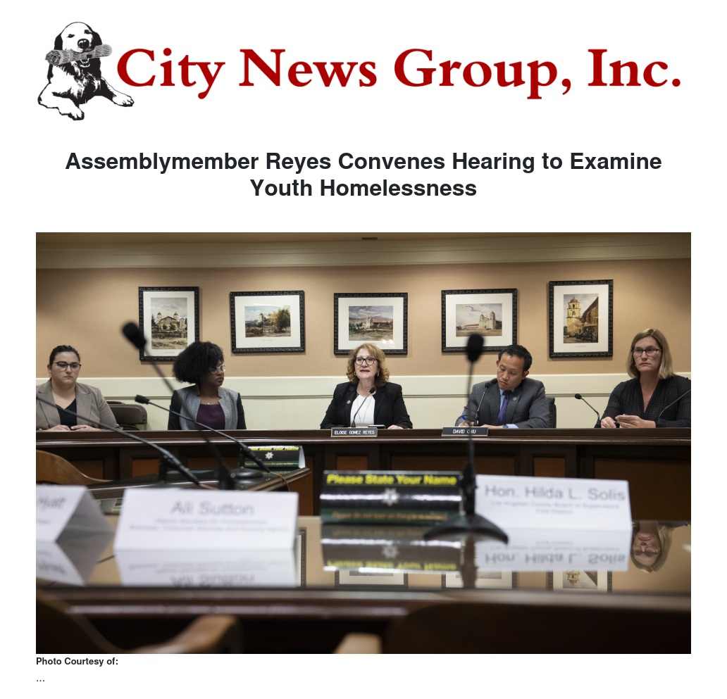 Assemblymember Reyes Convenes Hearing to Examine Youth Homelessness by Mark Farouk - City News Group, Inc.