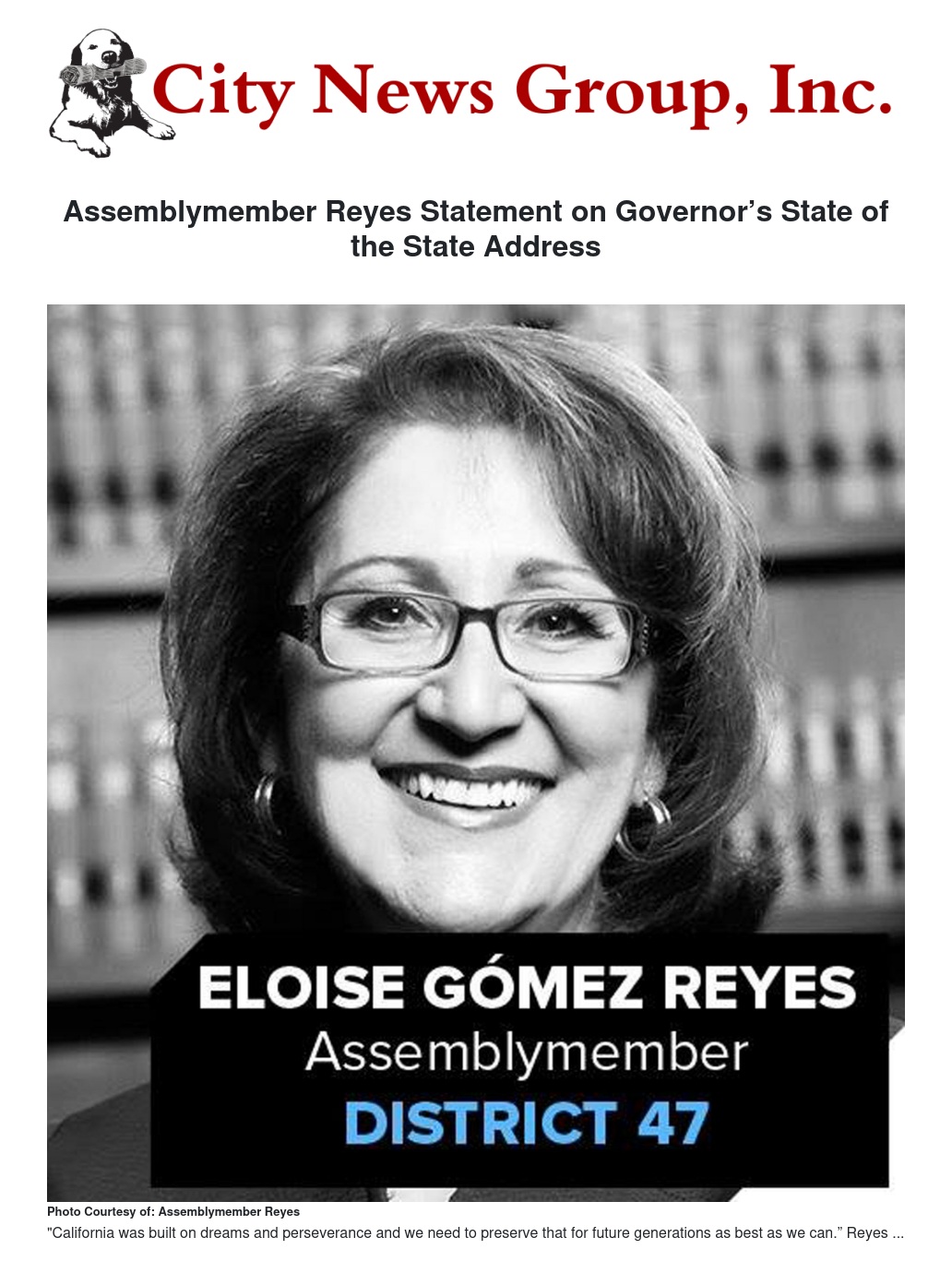Assemblymember Eloise Gómez Reyes (D-Grand Terrace) released the following statement on Governor Brown’s State of the State address.