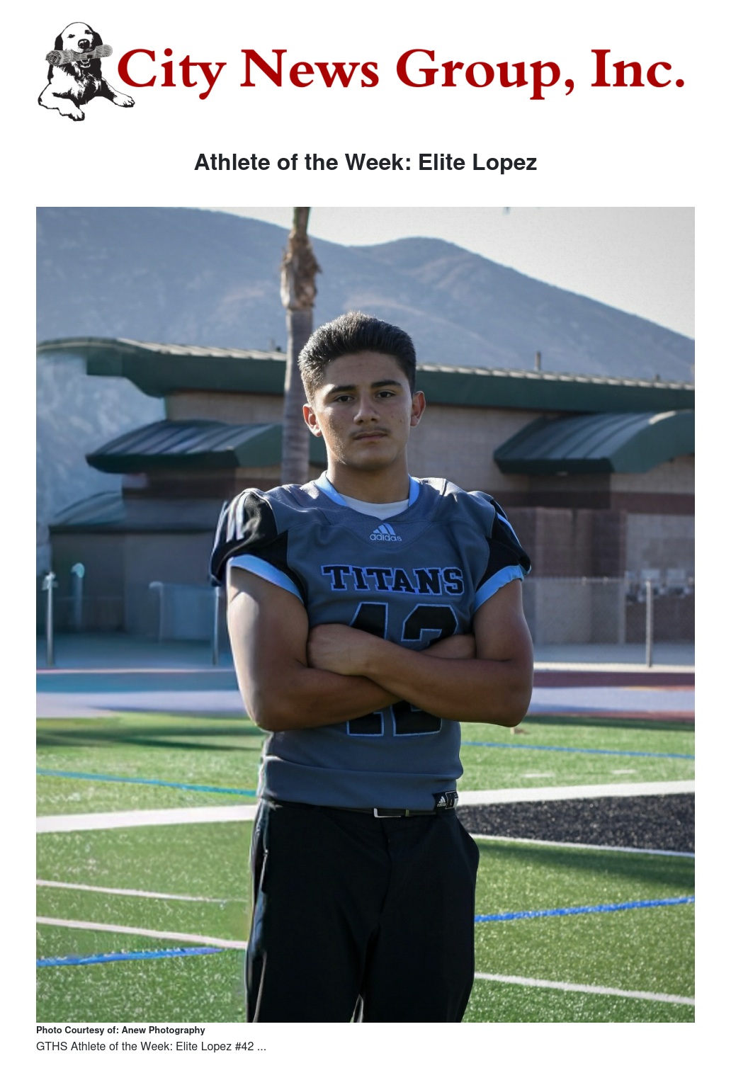 Grand Terrace High School Senior Elite Lopez, 17 years old, is being recognized as this week’s Athlete of the Week for his outstanding achievements both on the field and in the classroom.