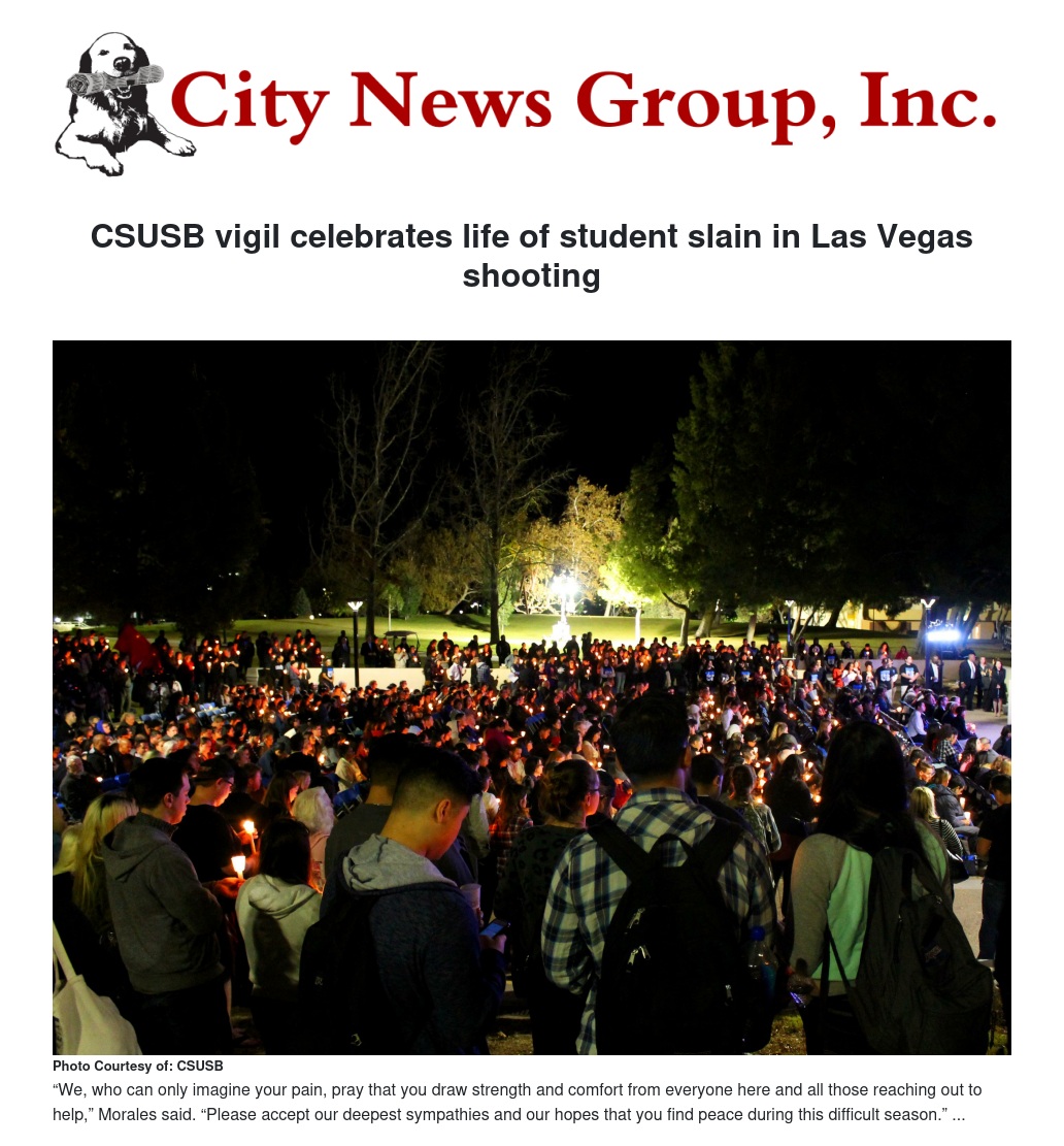 Rivera’s parents thanked all for coming to the vigil. Mary Rivera said her daughter loved the university and being a student here. “She was so excited to be part of Cal State San Bernardino,” she said.