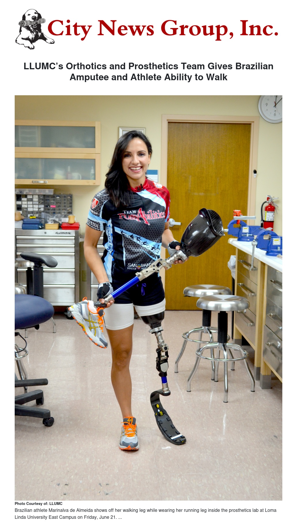 “We were definitely in uncharted territory when Marinalva came to us,” said Davidson, who serves as the clinical manager for orthotics and prosthetics at LLUMC. “The evolution of the prosthetic from the design of the leg, to fitting it, to actually using it is a very thorough, detailed process that typically takes six to eight weeks. We made two legs, one for running and one for walking, in less than three days.”