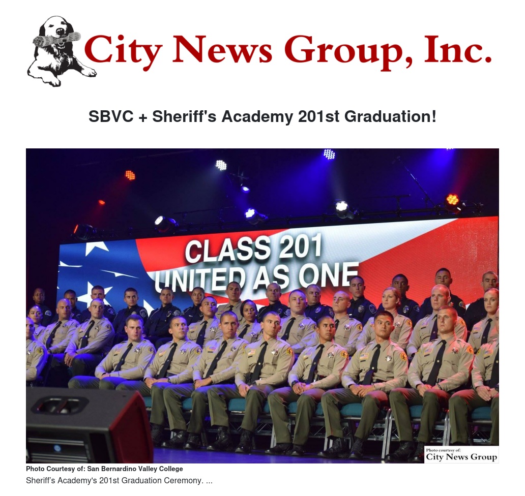 The San Bernardino County Sheriff’s Department and San Bernardino Valley College hosted the Sheriff’s Academy's 201st Graduation Ceremony. After the successful completion of an intensive 23-week program, 52 newly-graduated police officers will be joining local law enforcement agencies. 51 out of 52 graduates have already been recruited by law enforcement agencies and are now sworn officers.