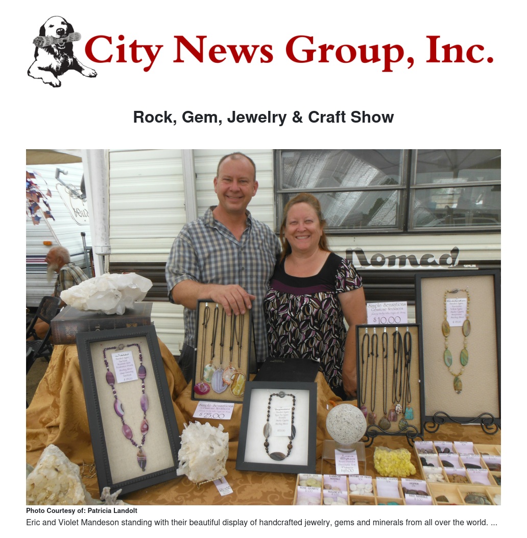 Eric and Violet Mandeson had an exquisite display of unusual rocks, stones and handcrafted jewelry. They said they have been rock hounds since children. They have had other careers but their passion is stones. Violet said, "As a girl, I would collect pails of black Apache tears in Arizona." Apache tears are rounded nodules of obsidian which is volcanic blackglass. Violet and Eric collect stones worldwide.