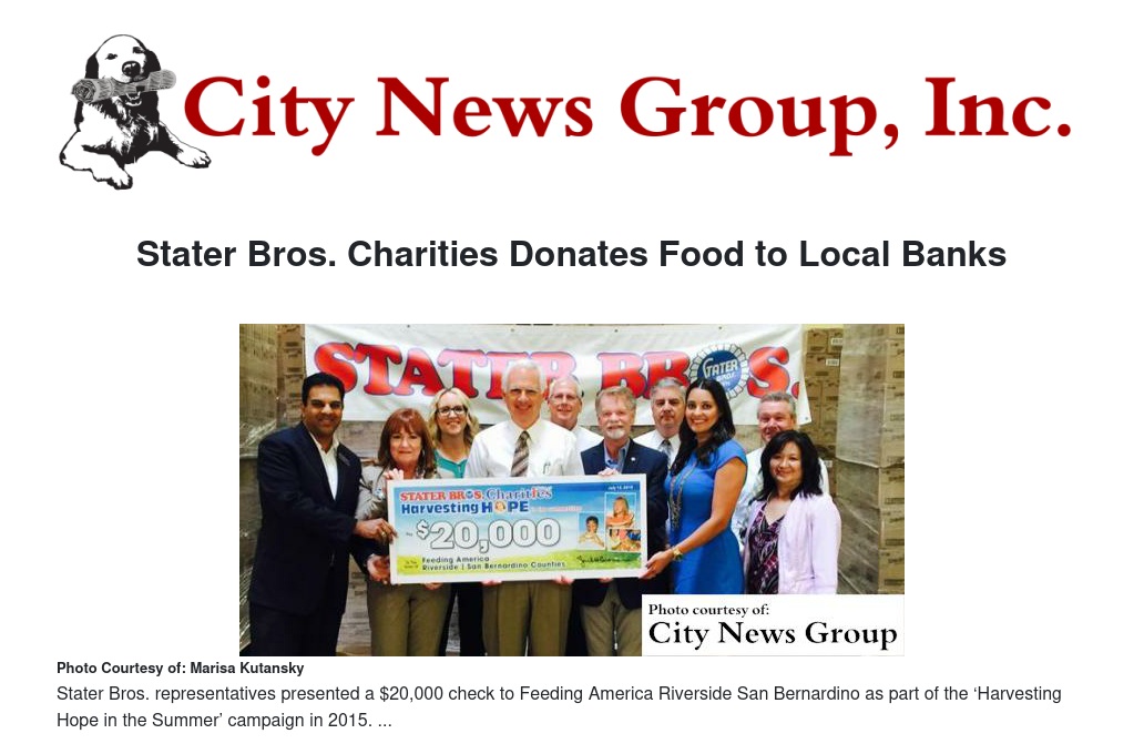 The “Harvesting Hope in the Summer” campaign is an extension of Stater Bros. ongoing efforts to give back to the valued communities Stater Bros. is privileged to serve.