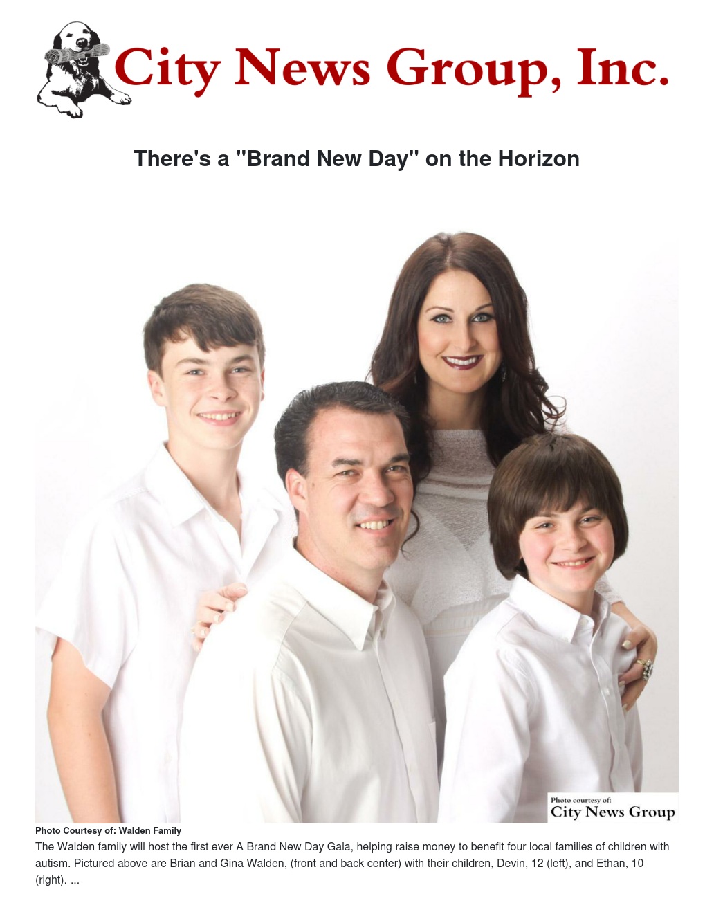 Hosted by Walden Family Ministries' Gina and Brian Walden, the introductory A Brand New Day Gala will be the first annual gala to allow parents and families of special needs children to attend a formal night out they wouldn't normally have and will also raise money to offer the support some of the families need.
