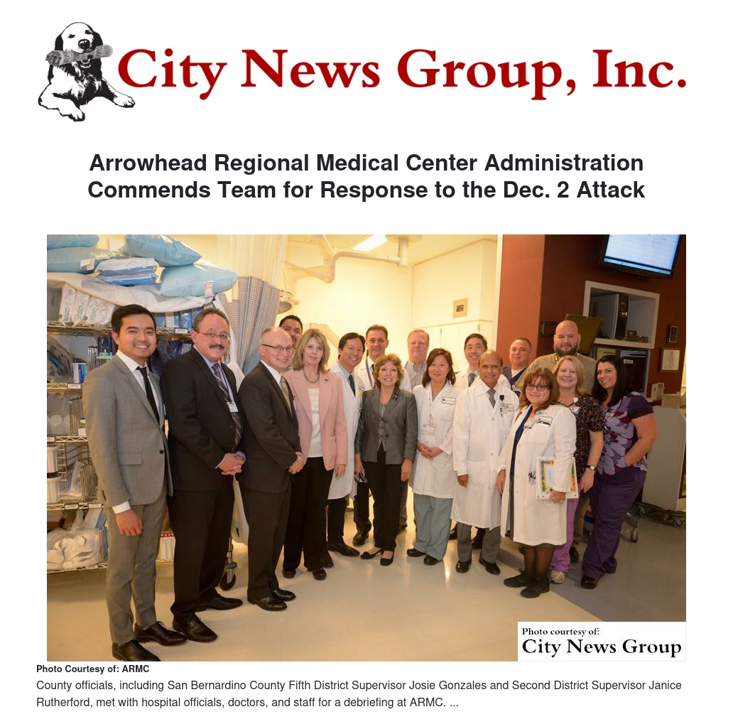 Arrowhead Regional Medical Center Administration Commends Team for Response to the Dec. 2 Attack