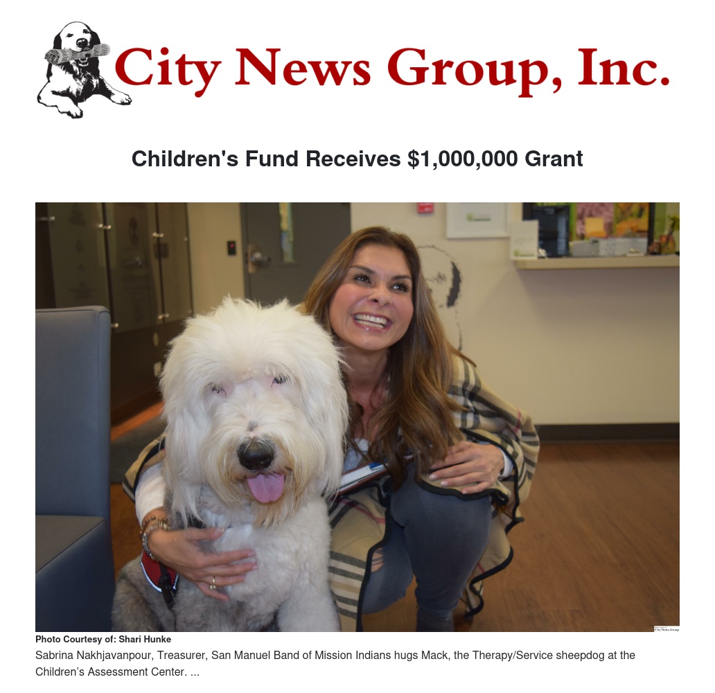 SAN BERNARDINO>> The San Manuel Band of Mission Indians has awarded $1,000,000 to nonprofit Children’s Fund for the Children’s Assessment Center. The grant will be awarded over a three-year period for increased services for San Bernardino's abused and neglected children being treated at the Center.