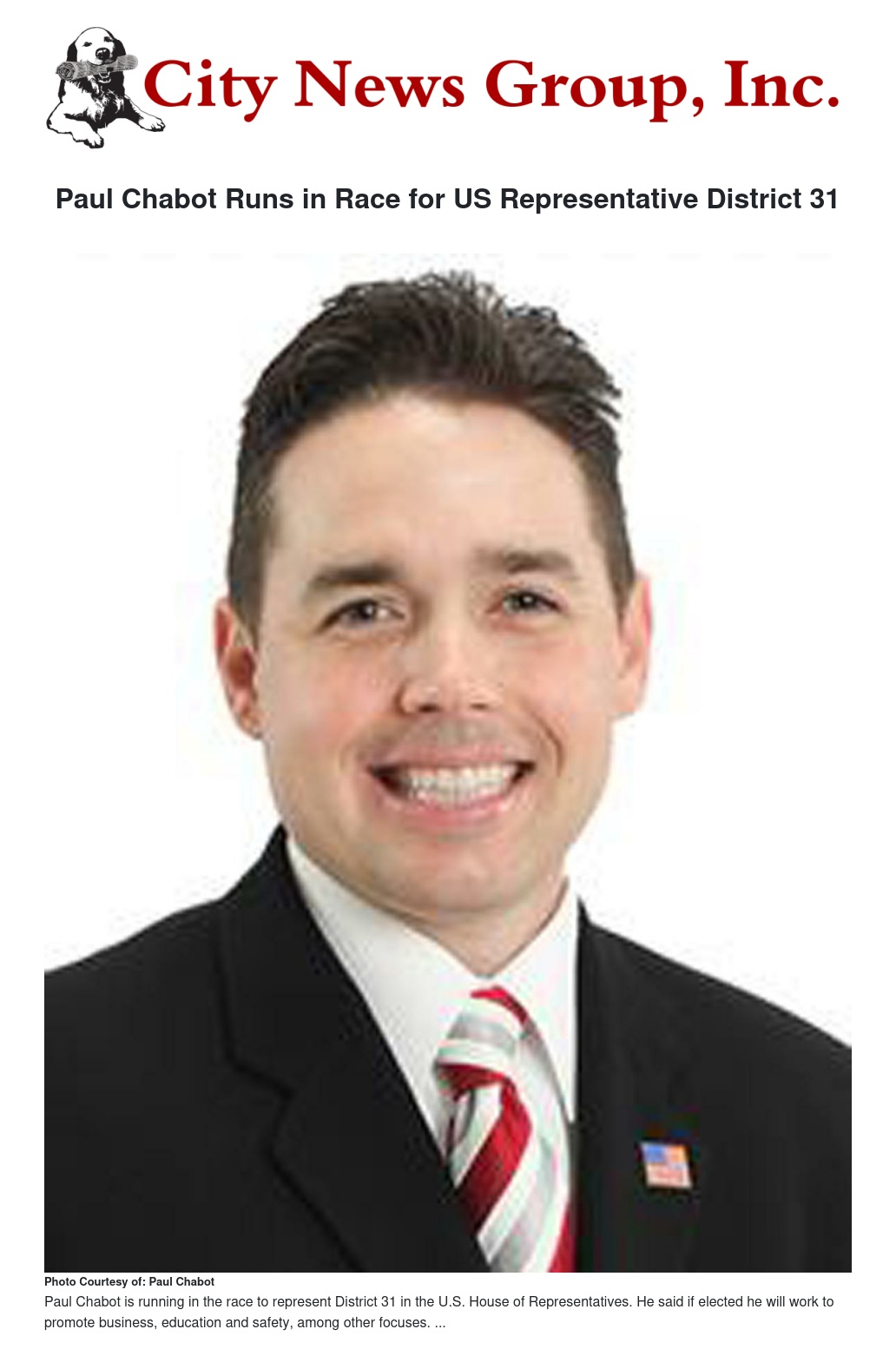 Paul Chabot Runs in Race for US Representative District 31