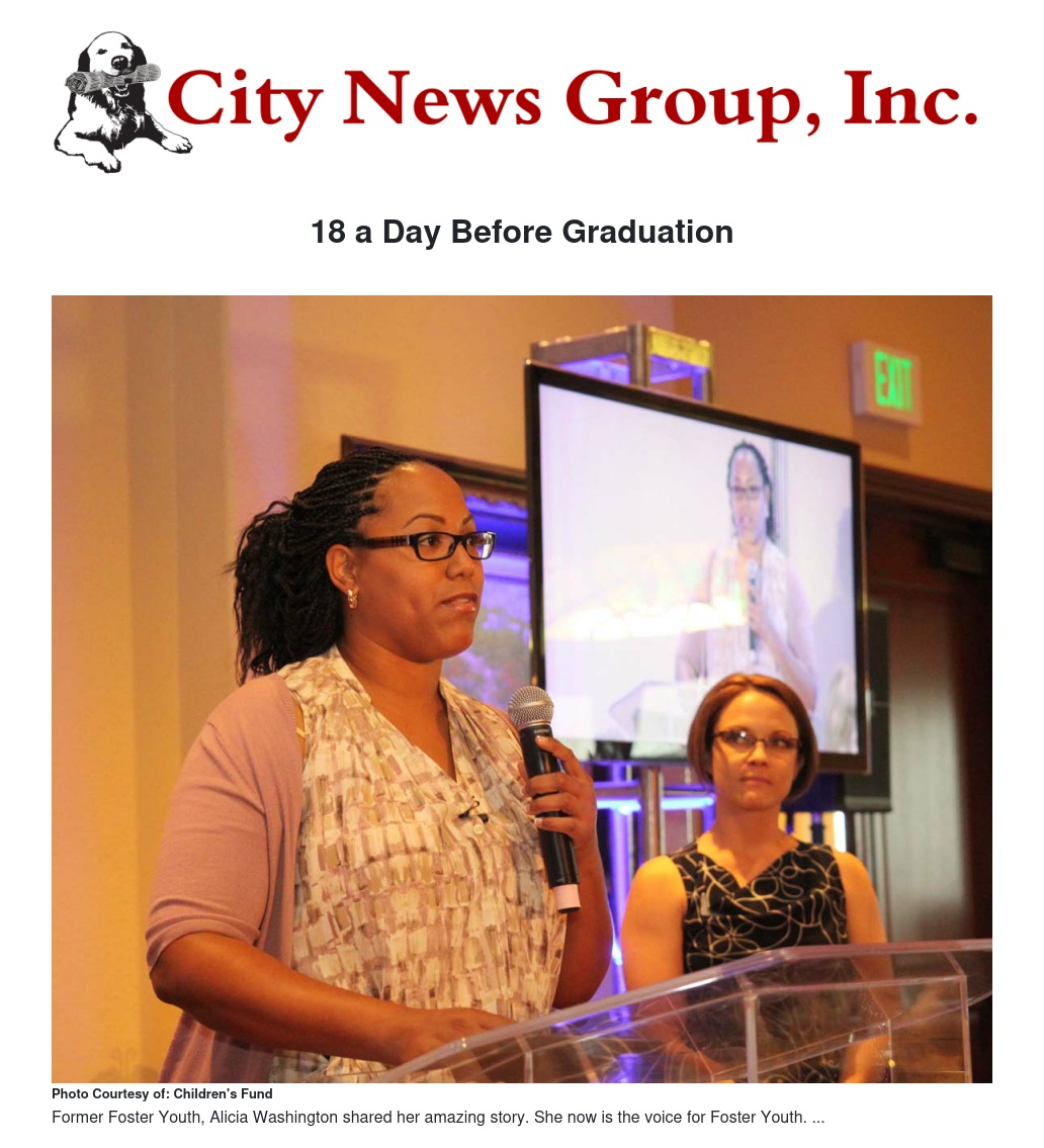 Washington continued her story of being homeless for quite a while and then discovered a program offered by San Bernardino County which provided transitional housing for foster youth, known as Children's Fund. Created in 1986, Children’s Fund is a non-profit whose mission is to prevent child abuse in our community; to ensure that at-risk children who are abused, neglected, impoverished, or abandoned receive adequate food, shelter, clothing, medical care and education; and to provide equal opportunity for social development for these children. Since its inception, Children’s Fund has served more than 1.3 million children.