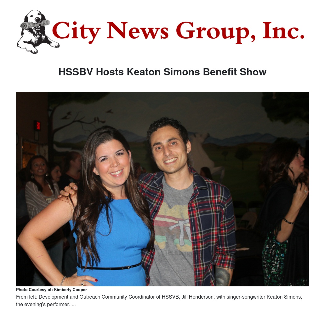Jill A. Henderson, HSSBV’s Development and Community Outreach Coordinator, said, “Keaton Simons is a great performer and we here at the Humane Society of San Bernardino are honored to have him perform for us, representing a great cause.”
