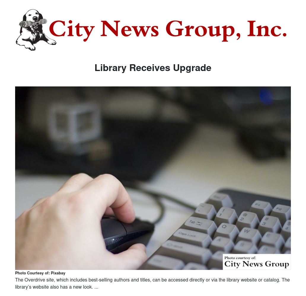 “We’d encourage the public to review these electronic resources to see their new look including how the Overdrive eBooks and Audiobooks are even easier to use,” said Library Ed Erjavek. “On the website re-design, I’d like to thank the library’s Webmaster Linda Puetz for her considerable time and efforts and also city Senior IT Analyst Glenn Cline and city Manager of Communications Monica Lagos for their assistance with this project.”
