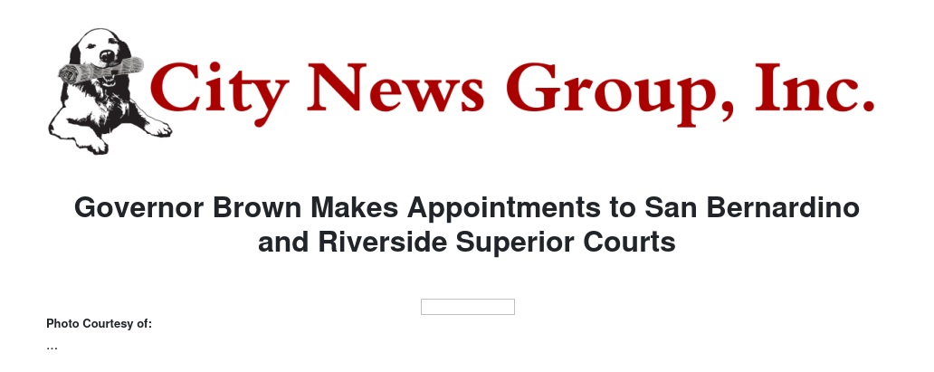 Governor Brown Makes Appointments to San Bernardino and Riverside Superior Courts