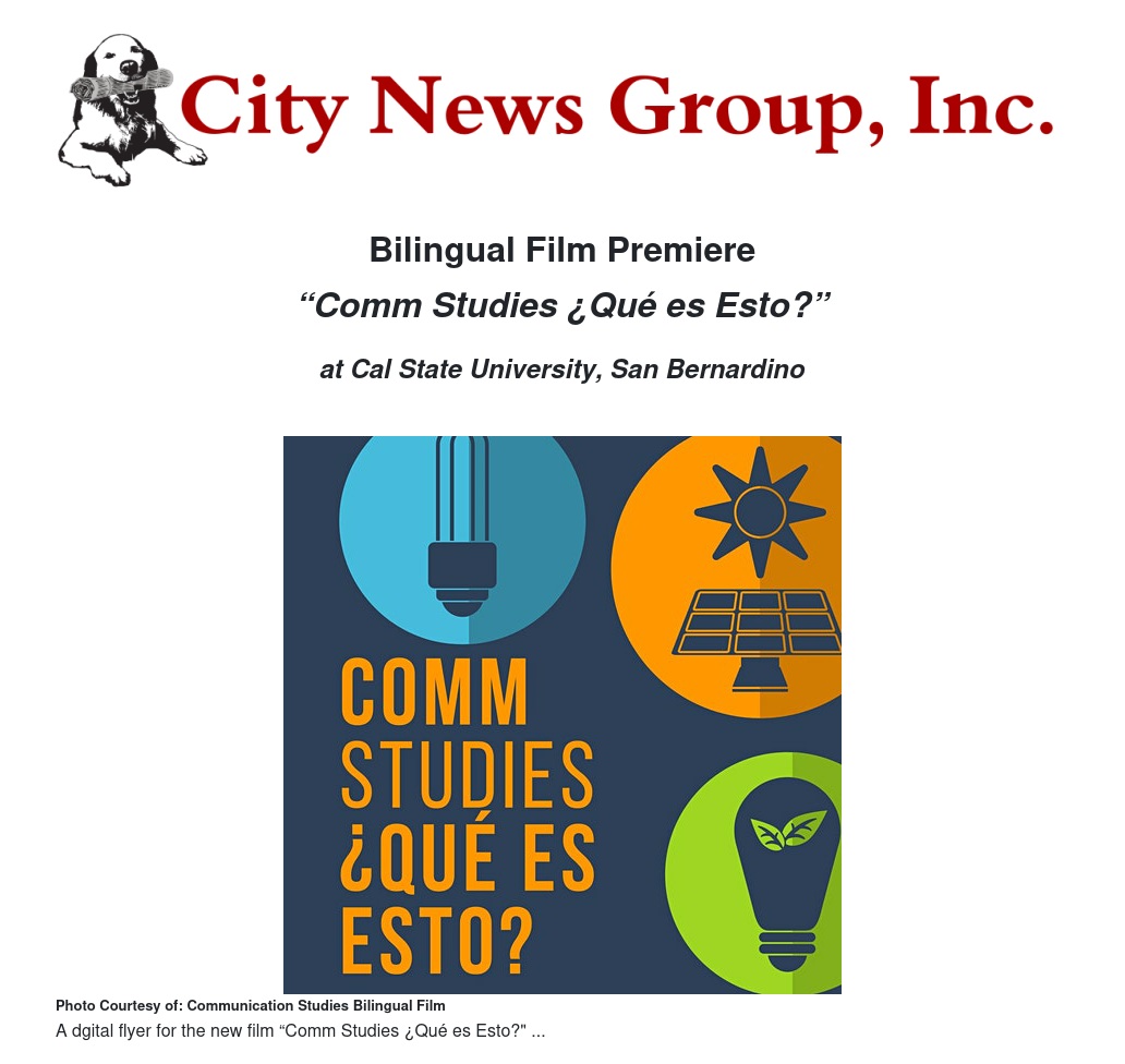 The new bilingual film “Comm Studies ¿Qué es Esto?” premieres April 13 from 5:30-8 p.m., and April 16 from 12-2:30 p.m., at California State University, San Bernardino, in University Hall in room UH-106.