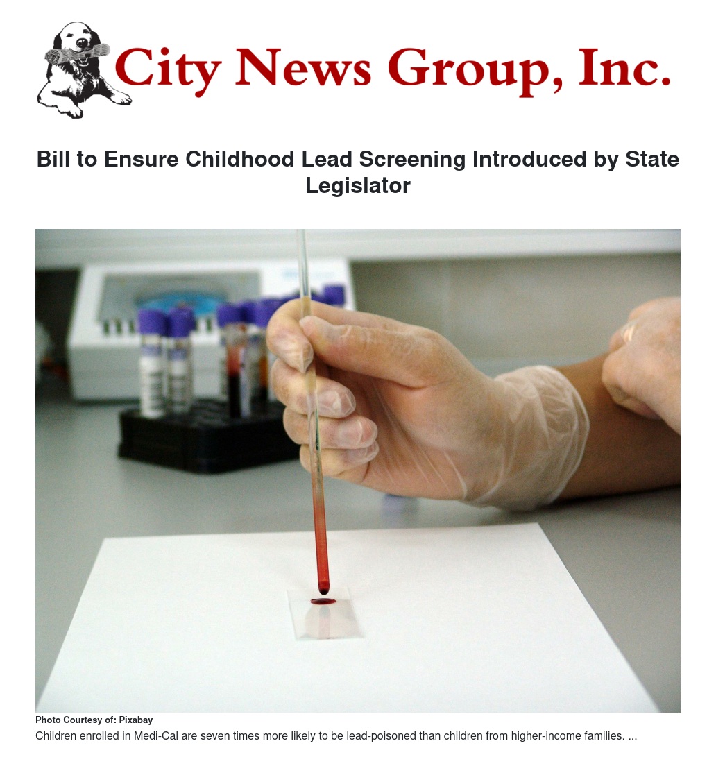 Earlier this week, Assemblymember Eloise Gómez Reyes (D-San Bernardino), introduced AB 2122 that would require the Department of Health Care Services (DHCS) to ensure that children enrolled in Medi-Cal receive blood lead screening tests at 12 and 24 months of age. The bill also requires the DHCS to test children between the ages of 2 and 6 if there is no existing lead test and to report its progress on testing all enrolled children.