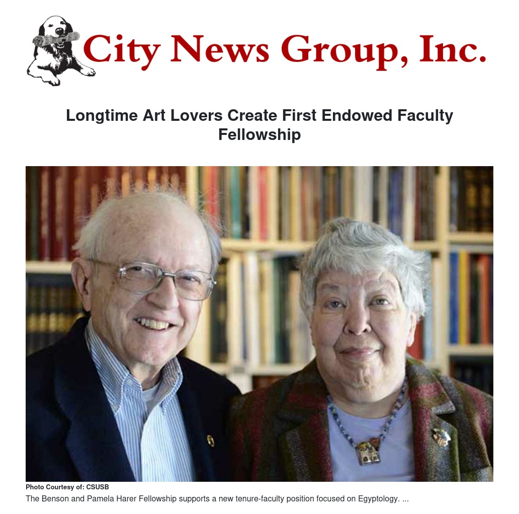 “The ancient Egyptians believed ‘You can take it with you’ and that is why the world has such rich treasures of their civilization,” said Dr. Harer. “We believe it is better to leave their treasures here to share with the students and community served by CSUSB. Teaching by a Faculty Fellow will enhance the educational value of our collection and broaden the experience of visitors.”