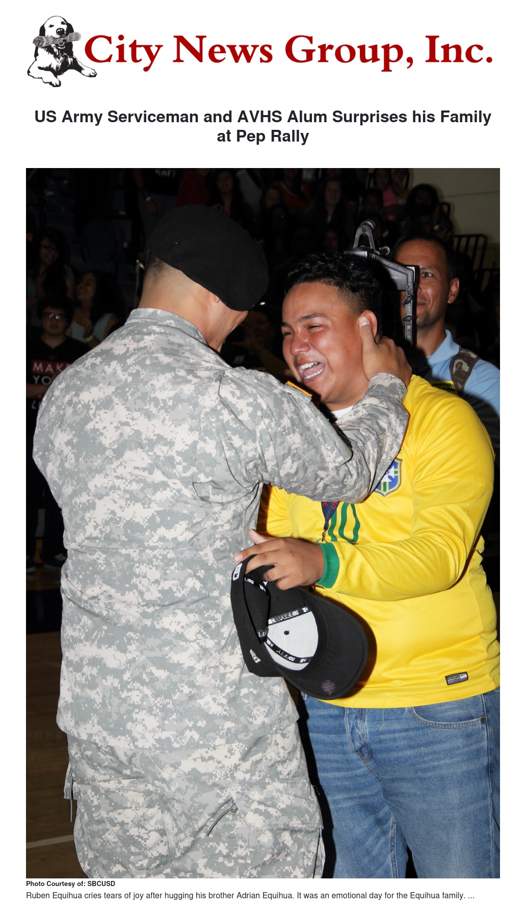 Equihua had an idea to surprise his brother Ruben, who is currently a senior at AVHS, at a pep rally the school friday morning at 8:50 a.m.