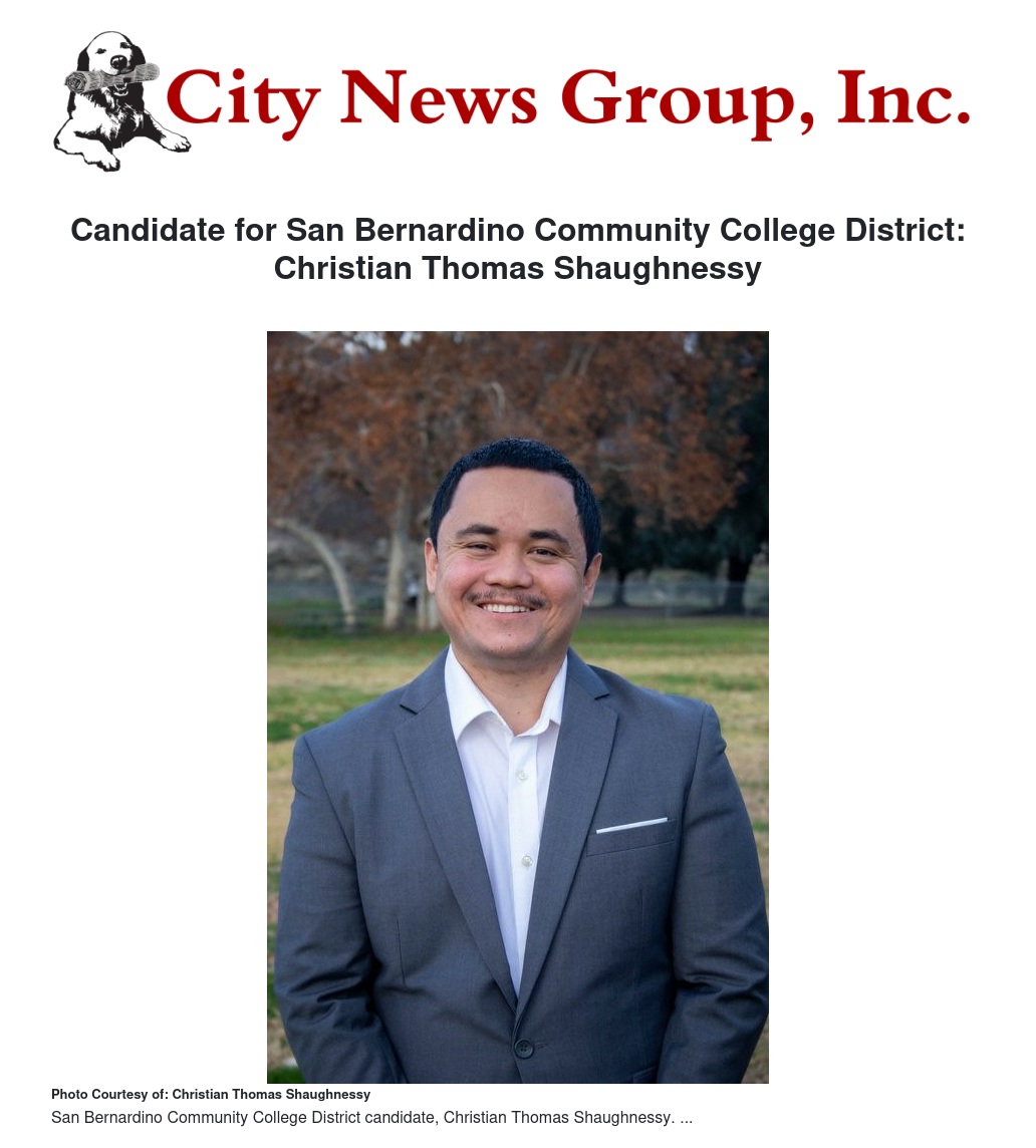 The upcoming General Election will hold its last voting date on November 8, 2022. For the San Bernardino Community College District Member, there are two candidates running for the Board of Education Area 4 one is Christian Thomas Shaughnessy.