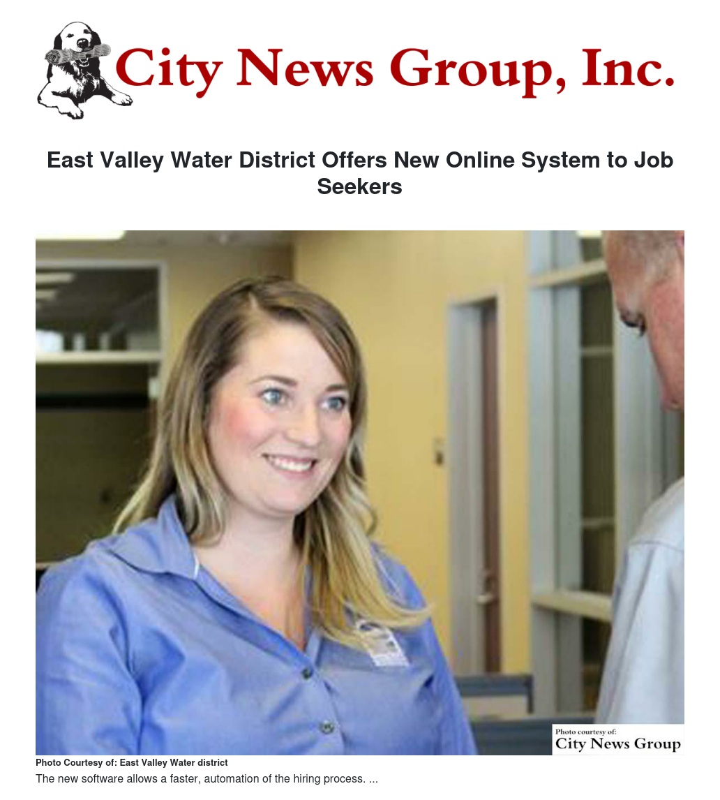 East Valley Water District takes pride in attracting and retaining the best and the brightest staff. In a world where information is available at our fingertips through the internet, the District just launched a new software system to improve the hiring process. Effective May 1, 2016, all District applications can be completed through NEOGOV, an online portal connected to the District’s website.