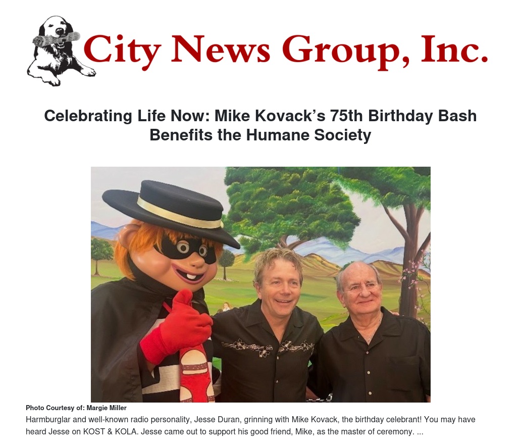 Celebrating Life Now: Mike Kovack’s 75th Birthday Bash Benefits the Humane Society by Margie Miller - City News Group, Inc.