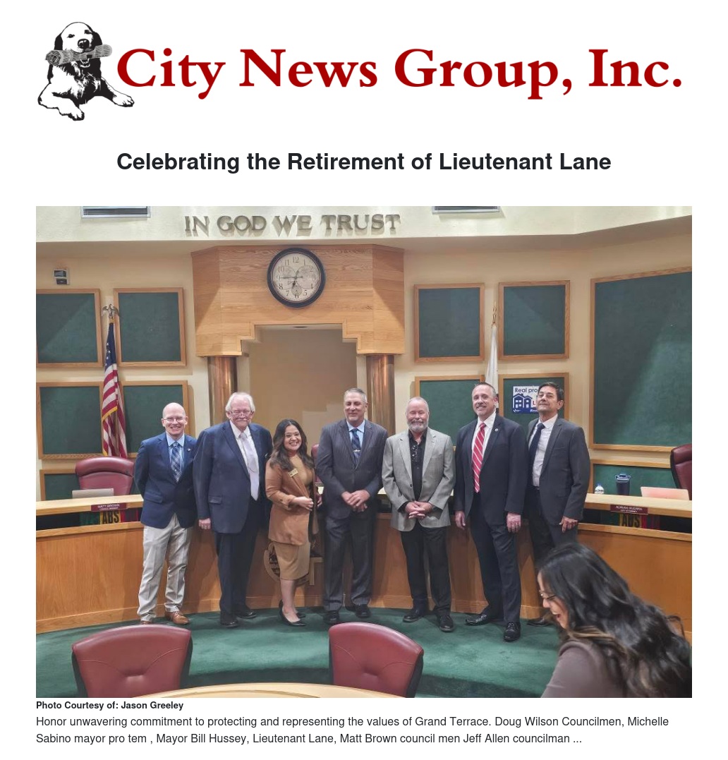 Lieutenant Lane’s impact on Grand Terrace will certainly be missed, but his legacy will continue to shine brightly in the hearts of all those who were fortunate enough to know him. As the city moves forward, it does so with a profound sense of gratitude for the years of service he provided and a commitment to honoring his legacy of safety, friendship, and community.