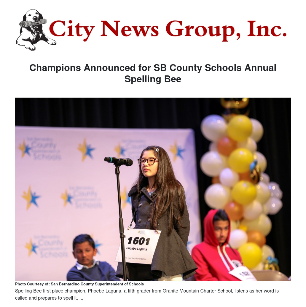 The San Bernardino County Superintendent of Schools held its 3rd annual Spelling Bee competition and awards ceremony on March 15 and crowned two first-place champions.