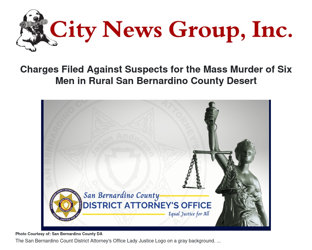 On January 30, 2024, the San Bernardino County District Attorney’s Office Major Crimes Unit reviewed the investigation and based on the evidence to date, have filed the following charges.