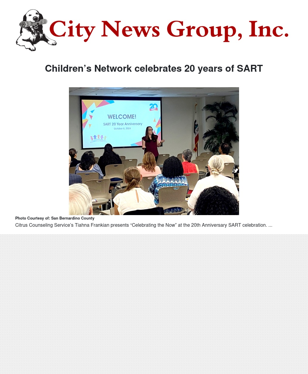 San Bernardino County’s Children’s Network celebrated the 20th Anniversary of the Screening, Assessment, Referral and Treatment (SART) program on Oct. 8 at First 5 San Bernardino.