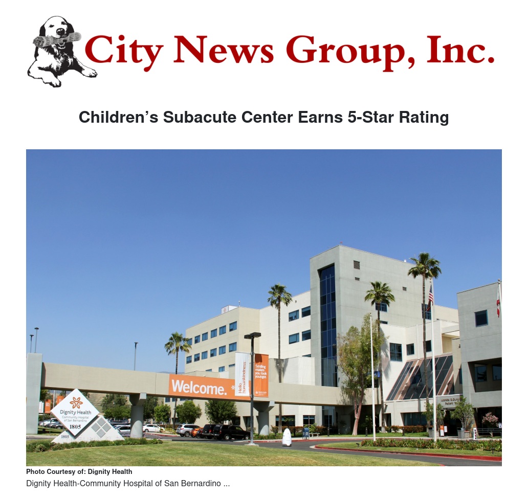 Dignity Health - Community Hospital of San Bernardino (CHSB) proudly announces the Children's Subacute Center has received a 5-star rating from the Centers for Medicare and Medicaid Services (CMS). This top-tier rating reflects the center’s exceptional performance across various quality measures, including patient safety and experience.