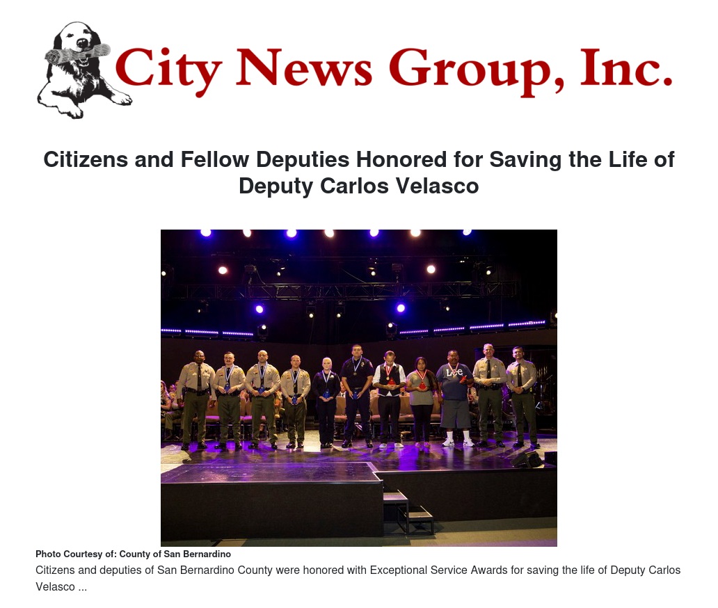 Citizens and Fellow Deputies Honored for Saving the Life of Deputy Carlos Velasco by Evelyn Sanchez - City News Group, Inc.