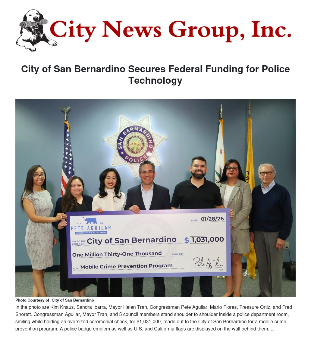 City of San Bernardino Secures Federal Funding for Police Technology by Jeff Kraus - City News Group, Inc.
