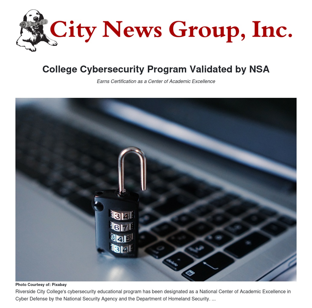 College Cybersecurity Program Validated by NSA by Robert Schmidt - City News Group, Inc.