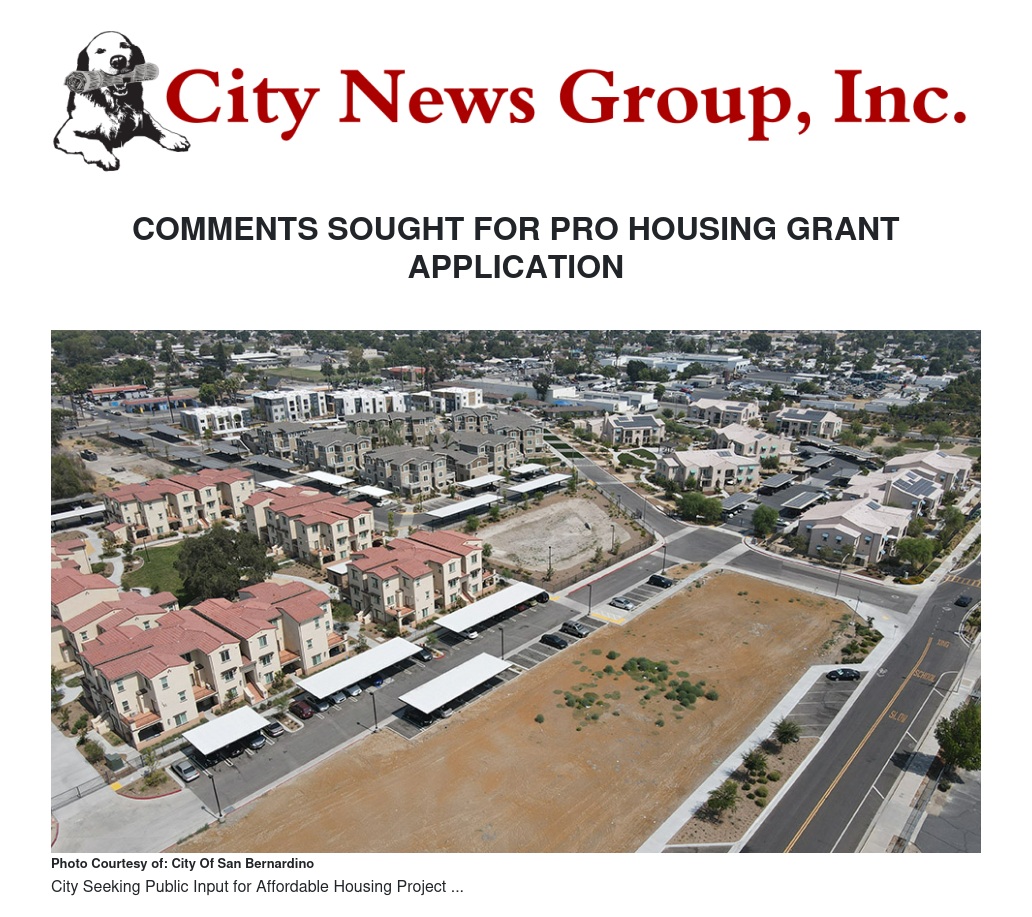 COMMENTS SOUGHT FOR PRO HOUSING GRANT APPLICATION by City Of San Bernardino - City News Group, Inc.