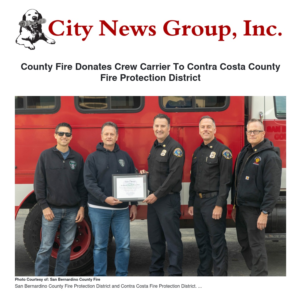 County Fire Donates Crew Carrier To Contra Costa County Fire Protection District by Tracey Martinez - City News Group, Inc.