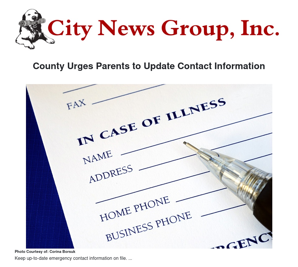 All families are encouraged to update their emergency contact information on file at their child’s school if they or other emergency contacts have moved or changed phone numbers or email addresses since August 2018.