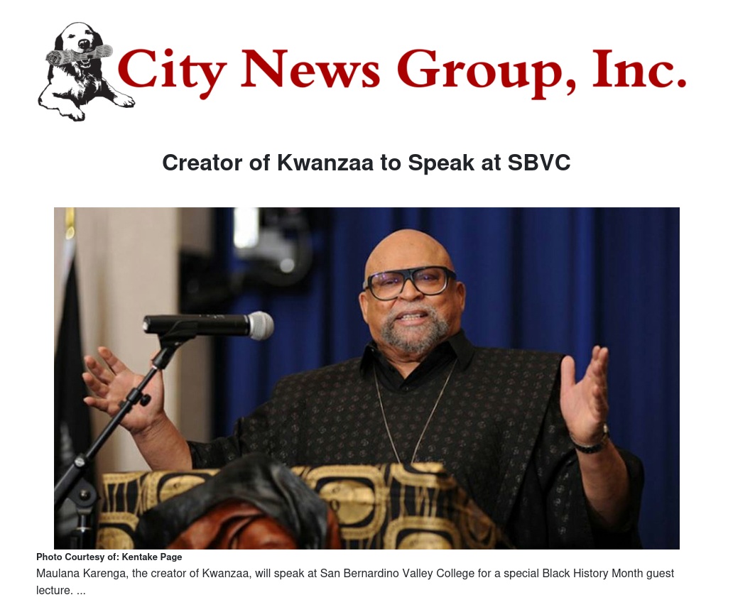 San Bernardino Valley College students, faculty and staff are eagerly awaiting a campus visit from distinguished professor, activist and author Maulana Karenga, best known as the creator of the pan-African and African-American holiday of Kwanzaa. On Wednesday, February 27, Dr. Karenga’s appearance at San Bernardino Valley College will be titled, "Message and Mission in Black History: Forging a Future and World of Inclusive Good.”